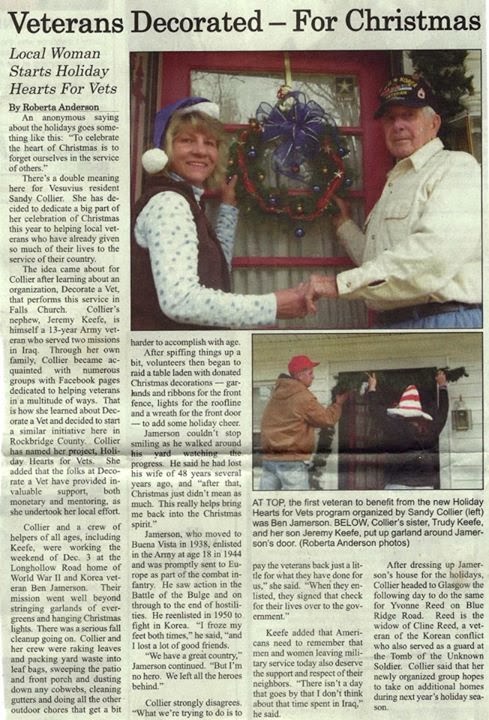 If you are in the Rockbridge area and want to help, be sure to contact them. You can find Holiday Hearts for Vets through this Facebook link.