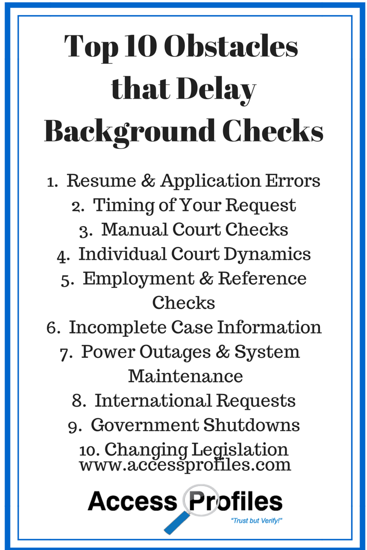 10 Obstacles that can Delay Your Background Check! "Tweet This"