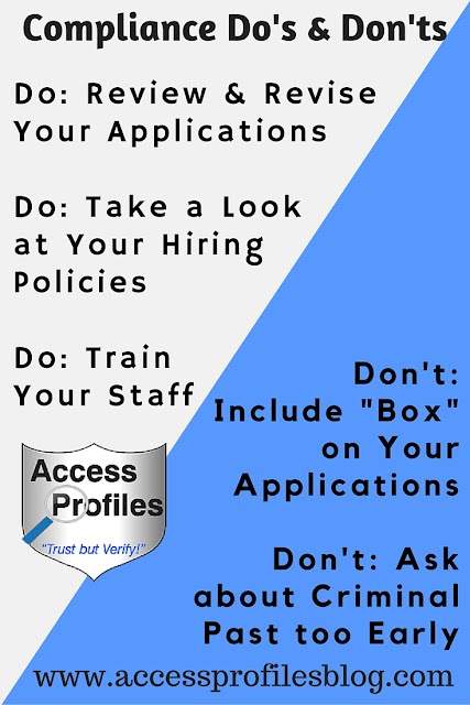 DO: Take a look at Your Hiring Policies. Make sure you are delaying any questions concerning prior criminal convictions or any criminal background check until after the interview or a conditional offer of employment has been made.