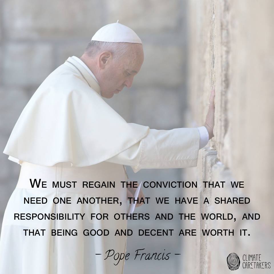 Pope Francis calls for all of us, individuals and companies, to move beyond a focus on profit at any cost and think about what we are doing and the impact it will have on the world.