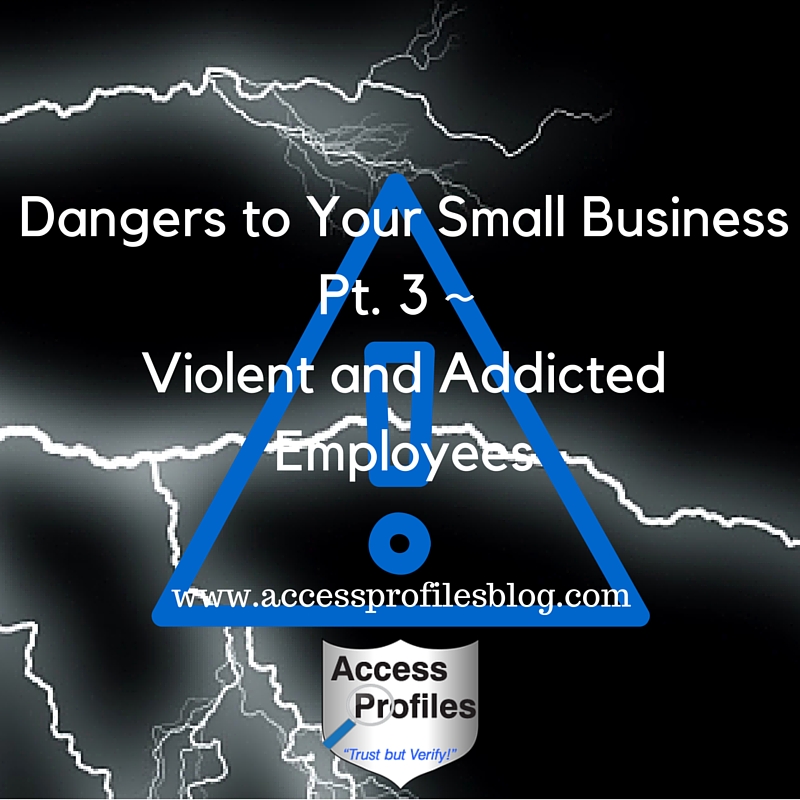 In this 3 Part Series, we have taken a look at Employees who can put Your Business in Danger. The final Installment ~ Violence and Addiction in the Workplace!